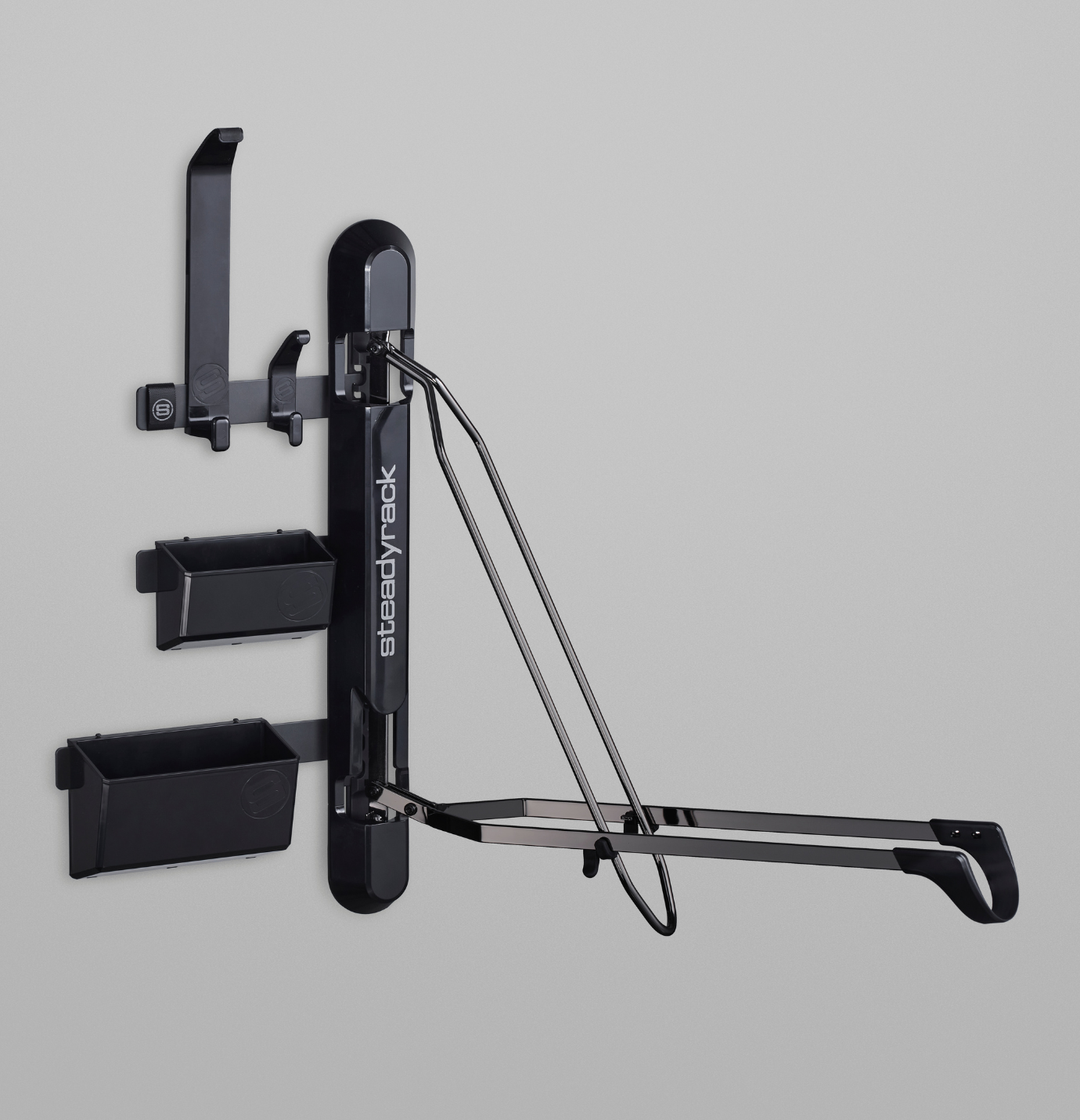 GearMate installs seamlessly behind your Steadyrack Bike Rack, with sturdy brackets to keep all your essentials in one place. Compatible with both Classic and ProFlex racks, it’s the perfect way to streamline your cycling storage.